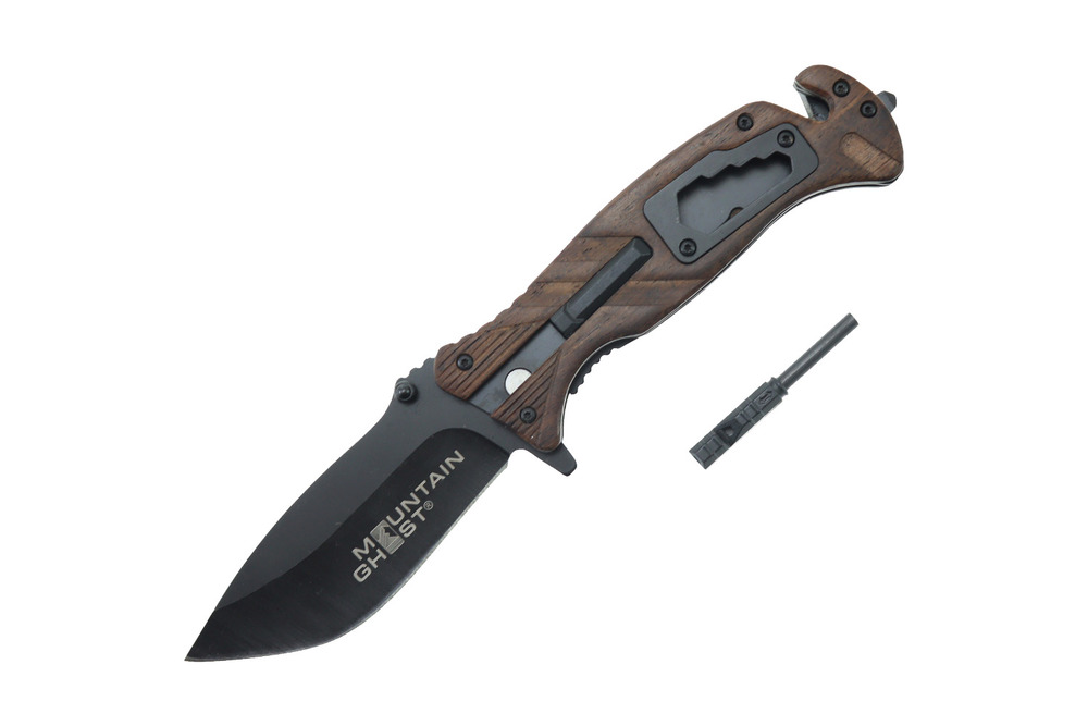 Głownia wykonana ze stali nierdzewnej, pokrytej czarną powłoką ochronną, która ogranicza refleksy świetlne oraz zwiększa odporność na korozję i ścieranie. Profil ostrza dostosowany do podstawowych prac użytkowych.