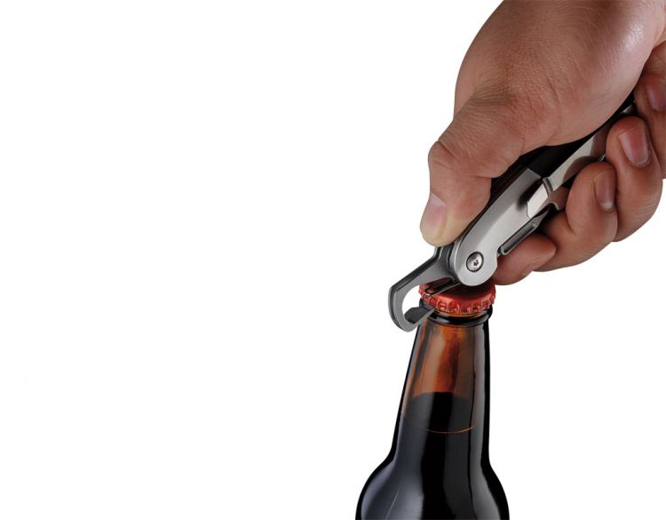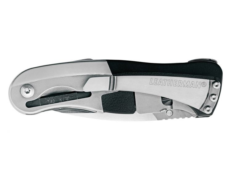 Prócz klasycznego ostrza oferuje gniazdo wymiennych końcówek śrubokrętów z dziewięcioma podwójnymi końcówkami,otwieracz do kapsli i karabińczyk.