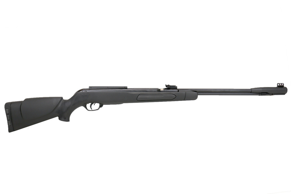 Wiatrówka wyposażona jest w stałą, gwintowaną lufę o kalibrze 4,5 mm oraz dźwignię dolnego naciągu.