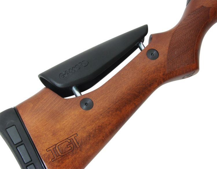 Adjustable Cheek Piece - kolba karabinów Gamo oznaczonych tym logo posiada regulowanej wysokości bakę - poduszkę policzkową. Dzięki temu strzelec ma możliwość poprawić wygodę składu w zależności od wielkości i kształtu głowy, a także z uwzględnieniem tego, czy używa celownika optycznego, czy strzela z przyrządów otwartych.