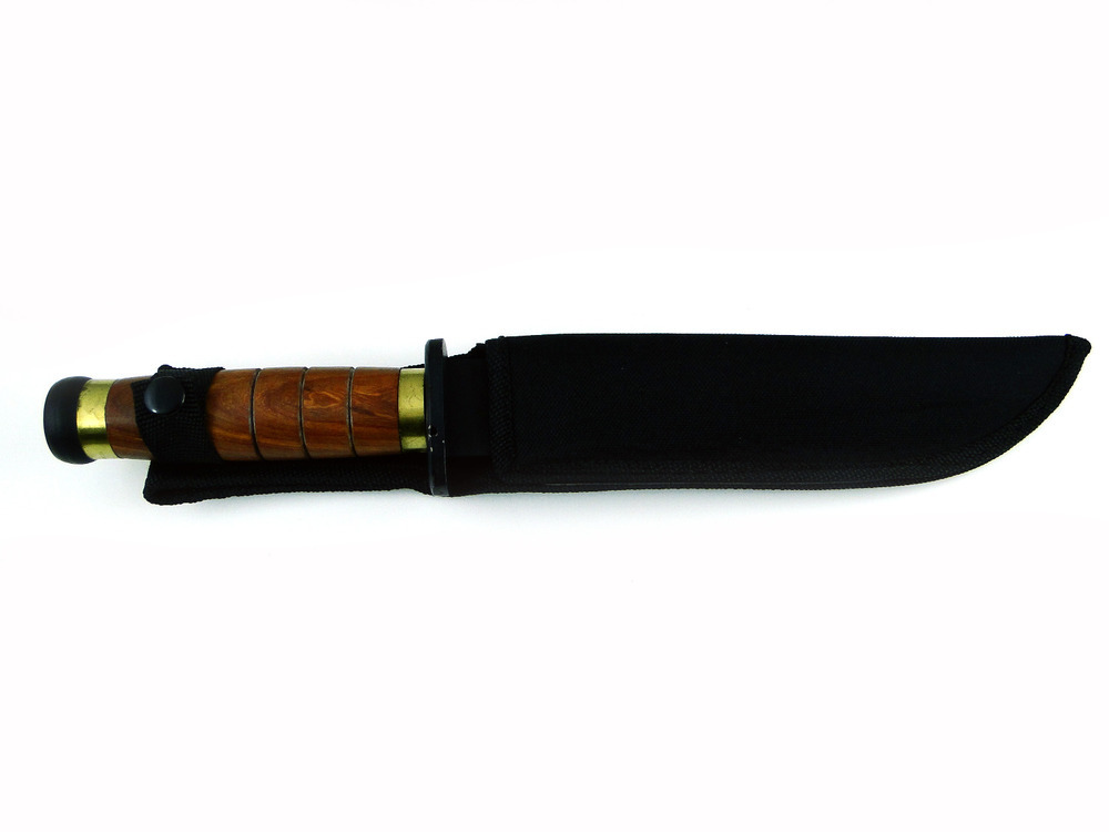Prezentowany nóż to dobre narzędzie, którym z łatwością przygotujesz posiłek w terenie, porąbiesz drewno na ognisko, a gdy zajdzie taka potrzeba, poprzycinasz gałęzie na budowę szałasu by przetrwać noc. Dodatkowym atutem jest oryginalny wygląd noża, dzięki czemu staje się on doskonałym materiałem na upominek dla każdego prawdziwego mężczyzny. Do noża dołączona jest funkcjonalna pochewka wykonana z cordury.