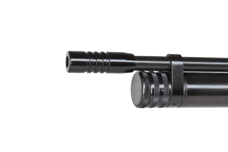 Stalowy, wymienny kartusz o pojemności 230 cc, posiada zintegrowany manometr, umożliwiający kontrolę ciśnienia powietrza w zbiorniku i tym samym poziom jego naładowania. Pierścień obrotowy chroni port ładowania przed zabrudzeniem i uszkodzeniem mechanicznym. Napełnienie kartusza sprężonym powietrzem do ciśnienia 200 BAR, zapewnia nam do 160 równych strzałów o zbliżonej prędkości początkowej. Kartusz może być oczywiście ładowany za pomocą ręcznej (dedykowanej)pompki lub z butli na powietrze (zestaw dedykowany).