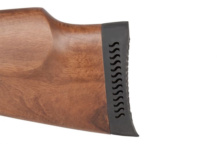 Komfort i wygodniejsze złożenie do strzału zwiększa gumowana, wentylowana stopka kolby.