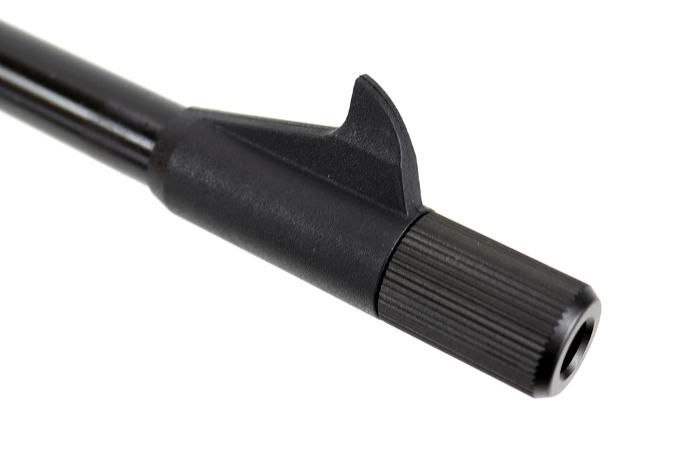 Karabinek ten posiada ergonomicznie wykonany przetykowy bezpiecznik umieszczony przy metalowym spuście.