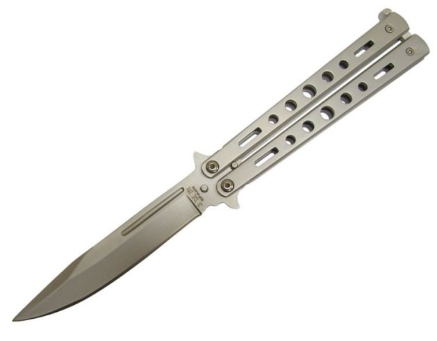 Solidnie wykonany, klasyczny nóż typu "motyl" z głownią clip-point.