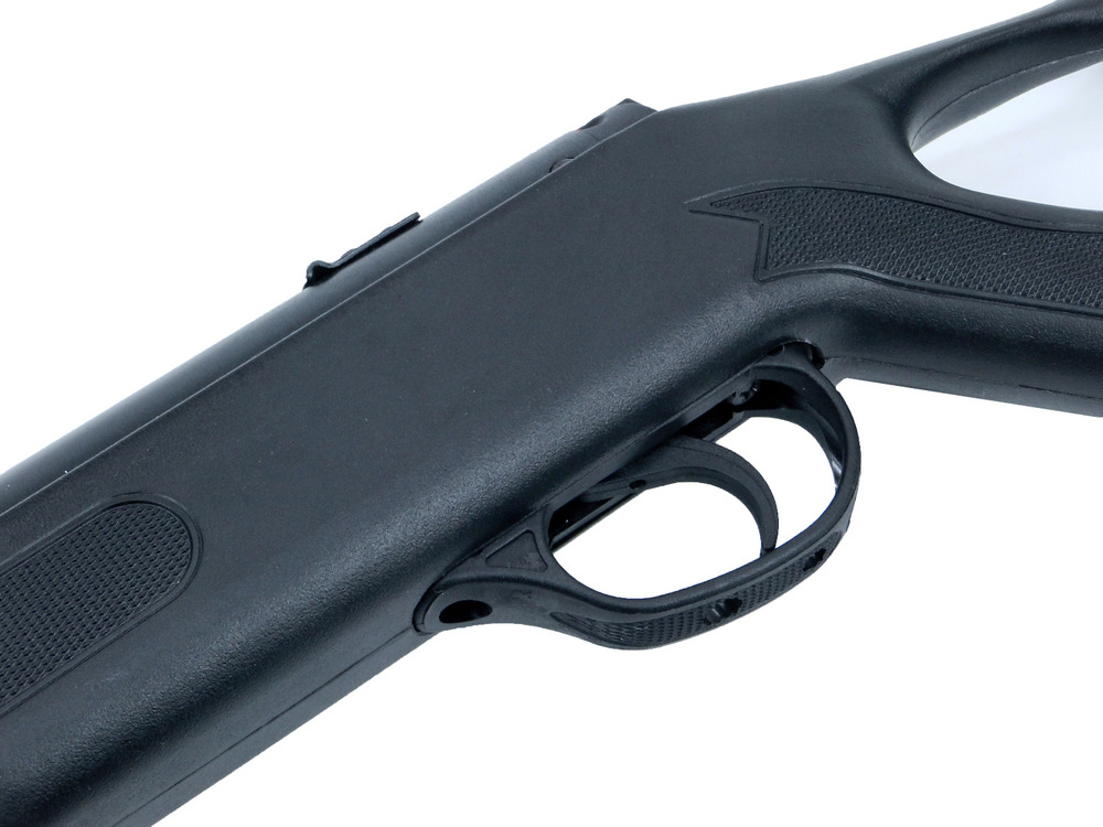 Automatyczny bezpiecznik - umieszczony w tylnej części cylindra wiatrówki chroni przed oddaniem niekontrolowanego strzału. Takie umiejscowienie pozwala na intuicyjną obsługę bezpiecznika kciukiem. Przed oddaniem strzału należy wcisnąć bezpiecznik co spowoduje zwolnienie blokady spustu, (każdorazowe naciągnięcie sprężyny wiatrówki powoduje automatyczne jego zadziałanie).