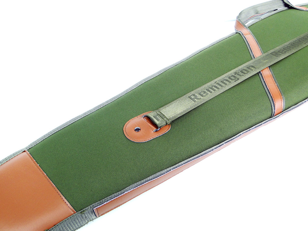 Długość zewnętrzna całkowita: 1370 mm Szerokość wewnętrzna w punkcie maksymalnym: 290 mm Wymiary kieszeni bocznej: 200x170 mm Materiał: gumowana cordura plus skóra ekologiczna Producent: Remington