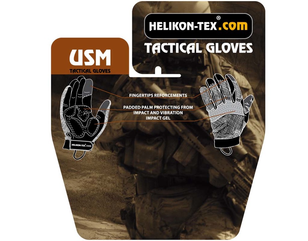 Rękawiczki taktyczne firmy Helikon wykonane z syntetycznej skóry na wewnętrznej stronie i przewiewnej tkaniny na zewnętrznej stronie dłoni. W miejscach narażonych na uderzenia (wierzch oraz podbicie dłoni, kłykcie i kostki) znajduje się wytłumiająca warstwa żelu (Impact Gel), która chroni nie tylko przed uderzeniami o ostre i twarde krawędzie (postrzałami kulką paintballową czy ASG) lecz również zwiększa komfort długotrwałego, mocnego chwytu (broni, kierownicy rowerowej, a nawet pilarki!).