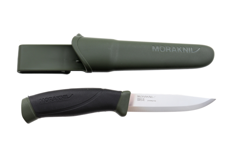 Morakniv Companion jest wyposażony w prostą kaburę z tworzywa sztucznego, która zabezpiecza nóż przed wypadnięciem i umożliwia przenoszenie go w dowolnej pozycji. Pochewkę można zamocować do pasa lub plecaka za pomocą sprężystego klipsa.