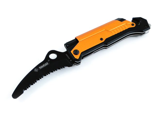 Nóż ratowniczy piła z krzesiwem latarką Kandar orange