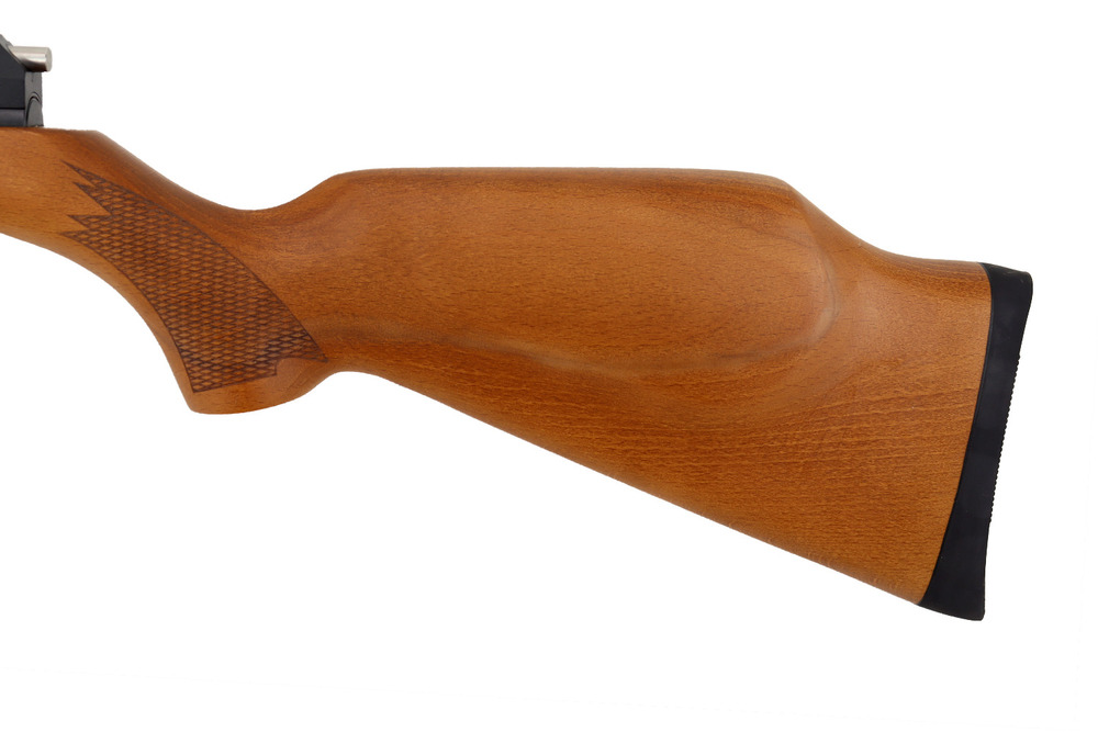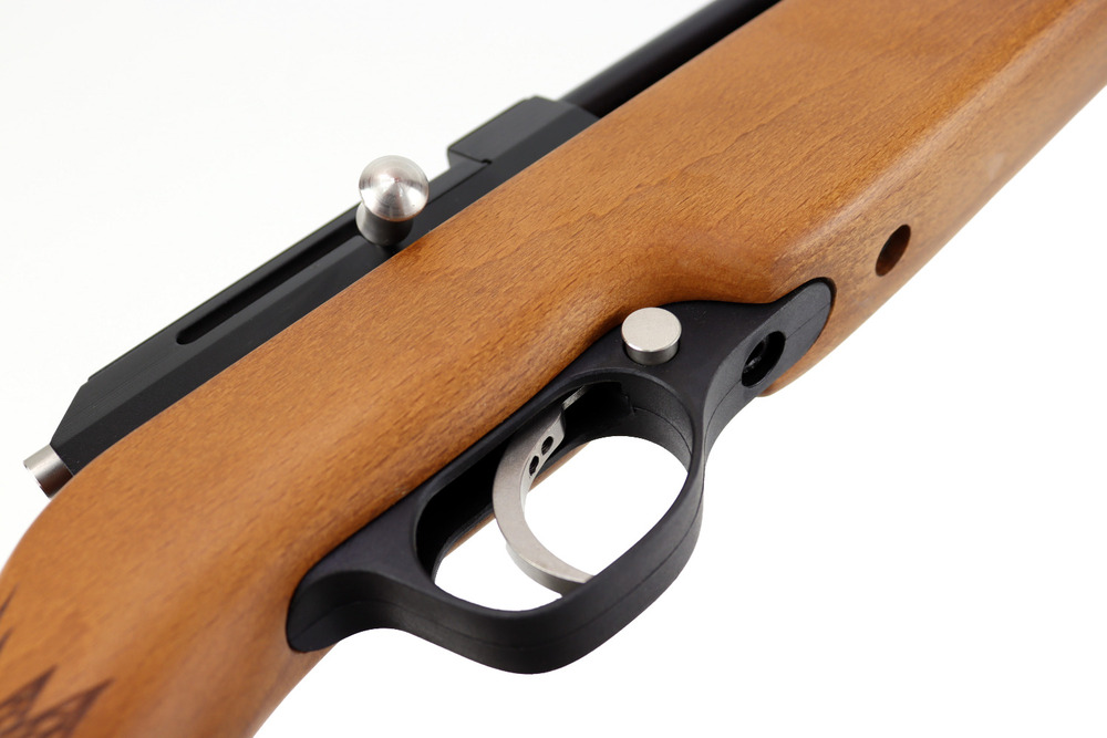 Kolbę wykonano z drewna bukowego. Profilowana dla osób praworęcznych z ryflowaniem w miejscach chwytu na łożu zakończona gumową stopką. Karabinek posiada zintegrowany tłumik pięciokomorowy bardzo dobrze wyciszający pracę wiatrówki. Na tłumiku została umieszczona muszka.