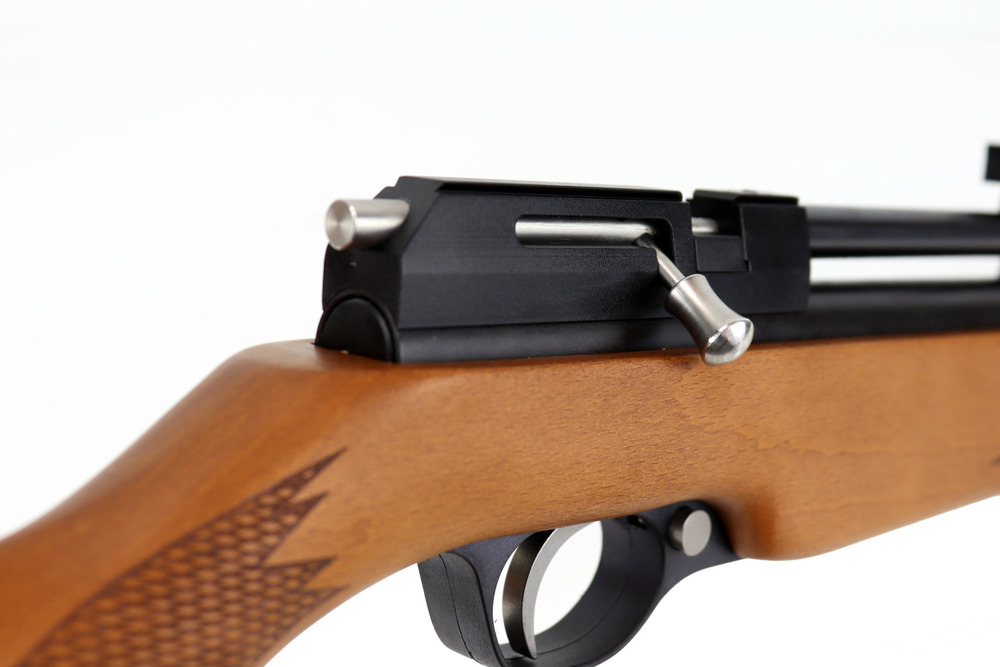 Karabinek PR900 wood to lekki i zgrabny karabinek w przedziale cenowym średniej klasy karabinków sprężynowych. Karabinek PCP na sprężone powietrze, ładowany za pomocą specjalnej pompki lub butli PCP. Z jednego ładowania kartusza mamy możliwość oddania około 90 powtarzalnych strzałów