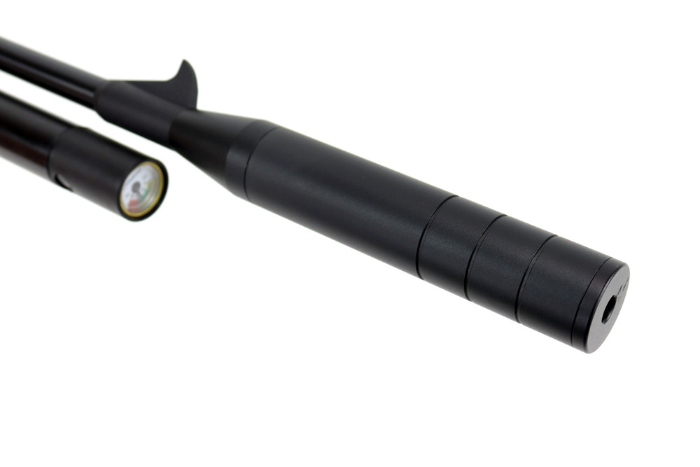 Karabinek posiada demontowalny tłumik pięciokomorowy bardzo dobrze wyciszający pracę wiatrówki. Założenie tłumika odbywa się poprzez odkręcenie polimerowej końcówki i nakręceniu w jej miejsce tłumika.