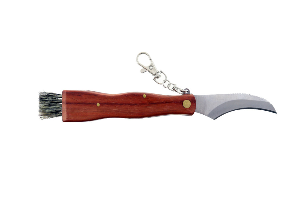 Profesjonalny nóż składany dla zbieraczy grzybów. Karabińczyk na rękojeści umożliwia przypięcie noża do elementów ubioru bądź ekwipunku.