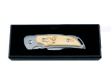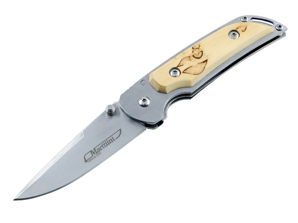 Niewielki i lekki nóż składany z klasycznymi drewnianymi okładzinami.