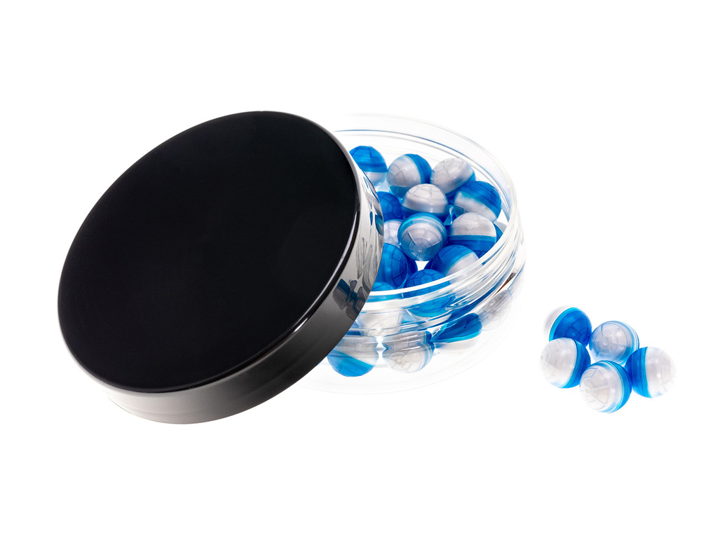 Zapas piećdziesięciu proszkowych kul kaliber 0.43 cala do pistoletów, karabinków i strzelb działających w systemie RAM (Real Action Marker).