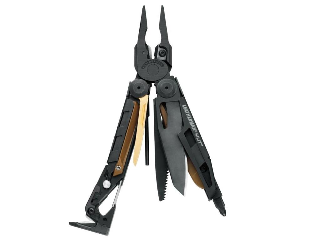 Leatherman MUT jest pierwszym multitoolem, którego funkcje obejmują zarówno taktyczną jak i praktyczną funkcjonalność dla wojska, służb policyjnych oraz strzelców cywilnych. Wersja z czernionym ostrzem i piłą.