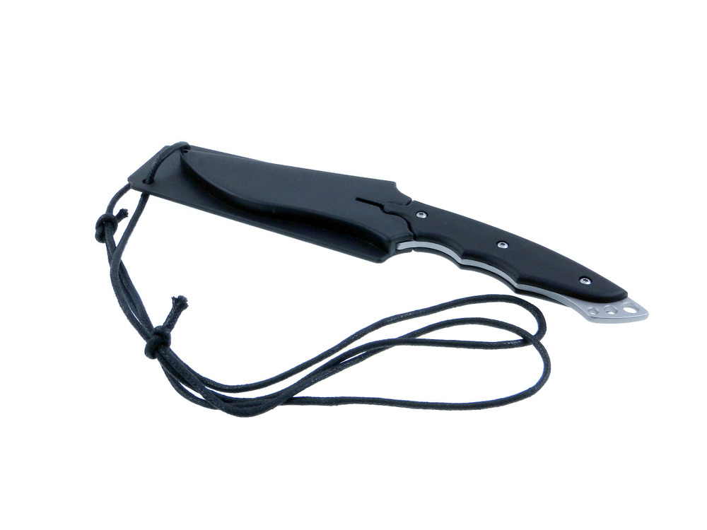 Do noża dołączona jest funkcjonalna pochewka którą można wraz z nożem nosić na szyi.