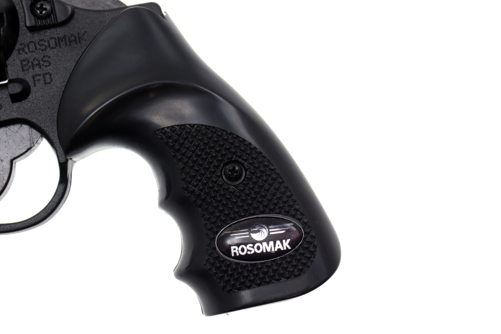 Okładziny rękojeści wykonano z wytrzymałego tworzywa ABS zostały zaprojektowane ergonomicznie zapewniając wygodne i pewne trzymanie rewolweru.