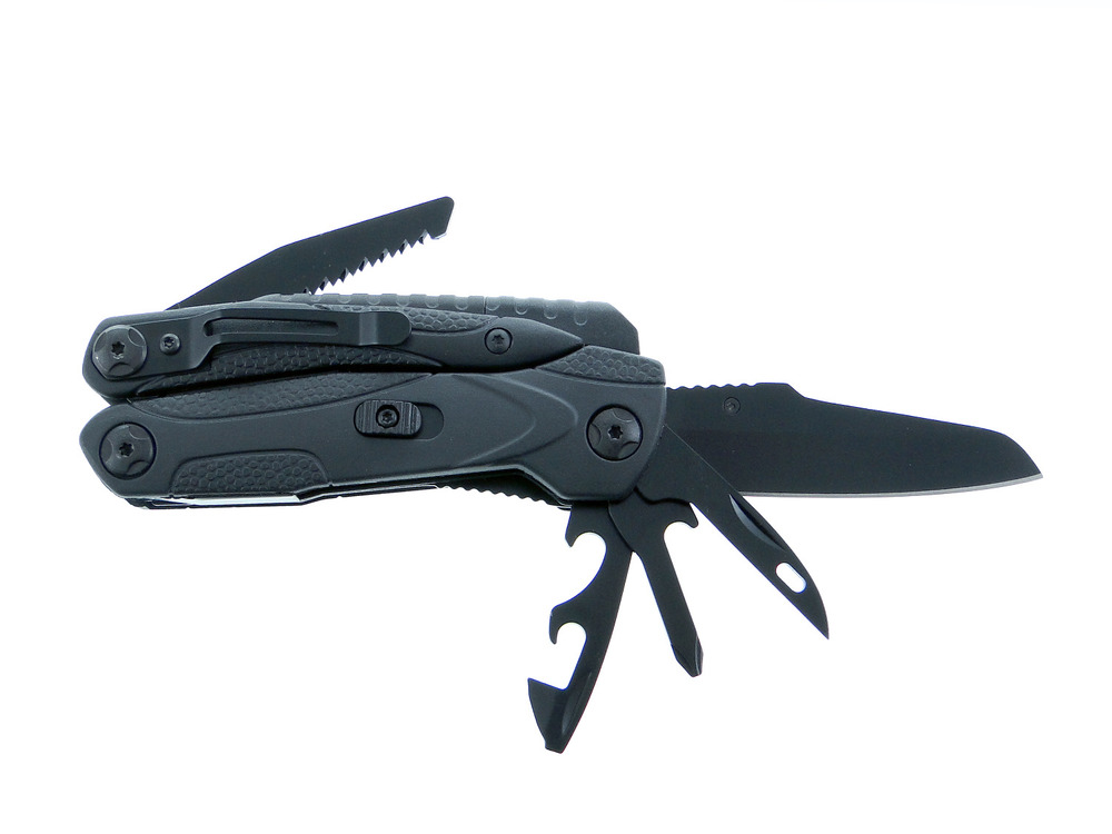 Ta wersja multitoola to połączenie noża taktycznego z zestawem niezbędnych narzędzi. Nóż posiada ostrze w całości gładkie oraz wygodny kołek umożliwiający otwarcie jedną ręką. Ostrze zabezpieczone przed samoczynnym złożeniem blokadą typu liner lock.
