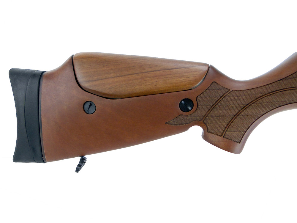 Dodatkowo jest ryflowana na łożu i na chwycie celem zwiększenia pewności chwytu podczas strzelania