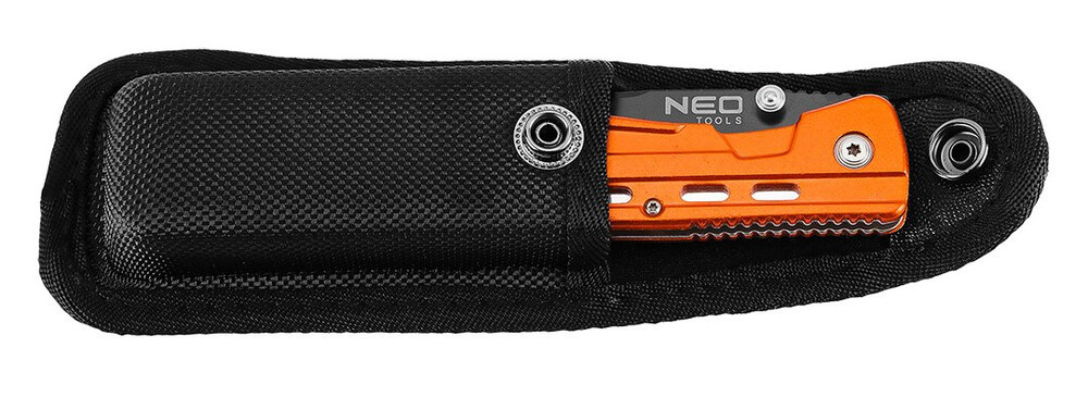 Ostrze składane o długości 8.5 cm z blokadą przed nieoczekiwanym zamknięciem.