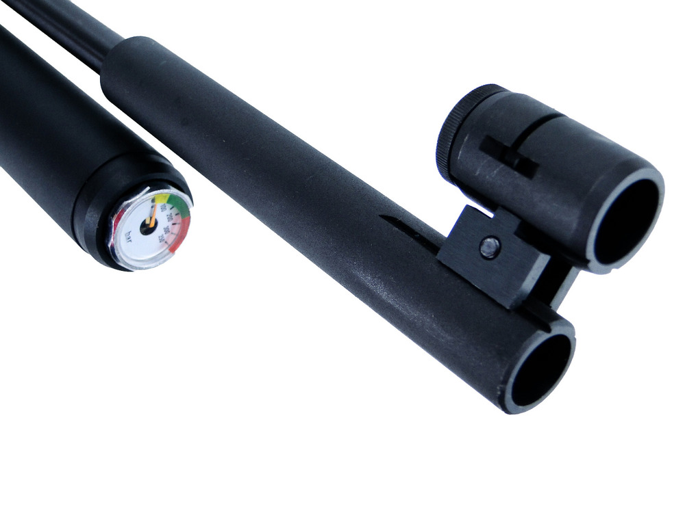 Napełnianie kartusza następuje poprzez jego wykręcenie z karabinka oraz wkręcenie specjalnego adapteru do podłączenia pod butlę lub pompkę za pomocą szybkozłączki.