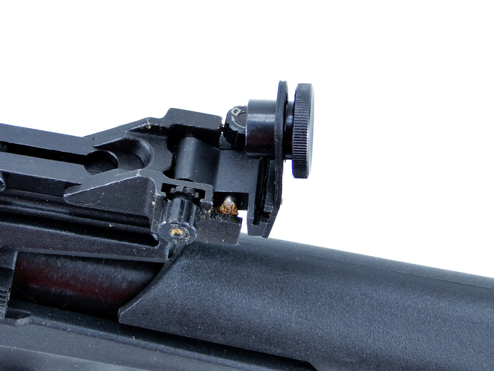 Szczerbinka w postaci diopteria jest w pełni regulowana zarówno w pionie jak i poziomie.
