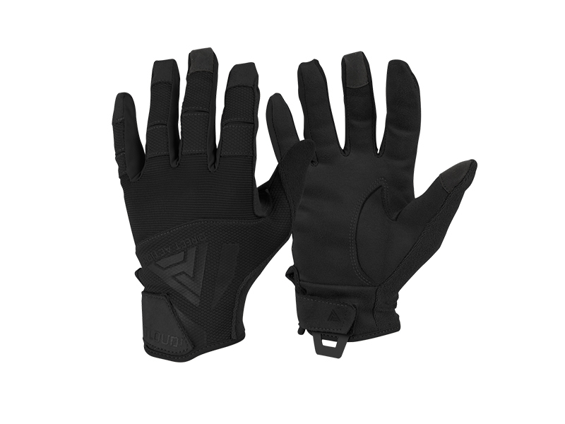 -Materiały na palcach zapewniające doskonałe wyczucie manipulatorów broni -Materiały ułatwiające wentylację dłoni -Elastyczne połączenia materiałów zwiększające ruchomość palców, ułatwiają dopasowanie rękawicy do dłoni -Obsługa ekranów dotykowych -Funkcjonalna pętla ułatwiająca zakładanie i ściąganie rękawicy oraz umożliwiająca przypięcie rękawic do oporządzenia -Patka zapinana na rzep, ułatwiająca dopasowanie do nadgarstka -Rozcięcia na zgięciach palców