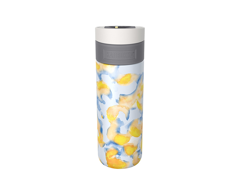 Kubek termiczny Etna o pojemności 500 ml w kolorowym wzorze. Wlejesz do niego gorącą kawę do pracy lub zimny napój na trening. Kubek utrzymuje temperaturę gorących napoi przez 8 godzin, a zimnych przez 18 godzin. Jest szczelny, więc nie musisz się martwić, że wyleje się, kiedy włożysz go do plecaka lub torby. Ma praktyczną nakrętkę 3 w 1, która pozwala na wygodne picie z kubka niezależnie od sytuacji, w jakiej się znajdujesz. Po użyciu kubka z łatwością go umyjesz. Ma nakrętkę, którą można myć w zmywarce i technologię Snapclean®! Wystarczy ścisnąć i pociągnąć, aby wyjąć wewnętrzny mechanizm, by móc dokładnie go umyć.