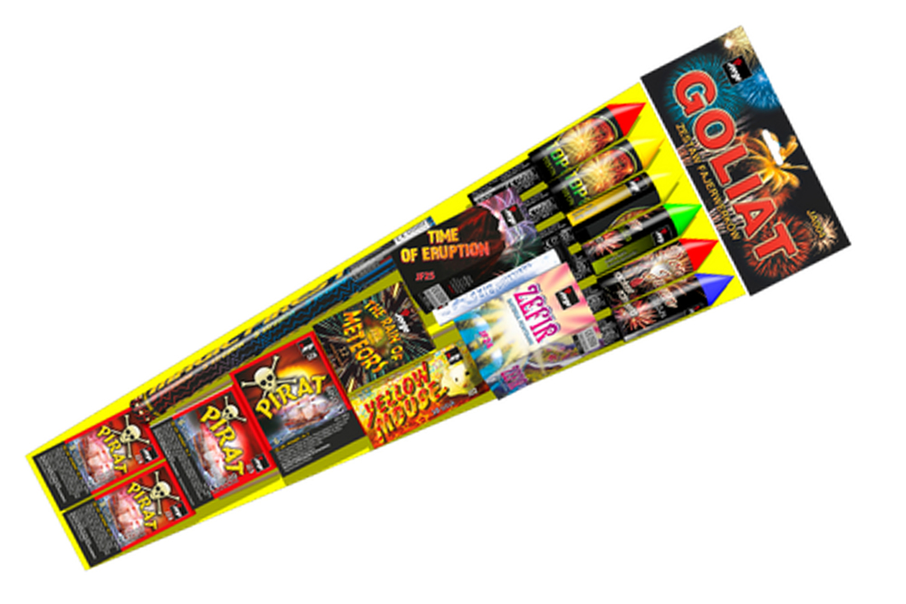 - rakiety JR41 - 3 sztuki - rakiety T0517N - 3 sztuki - rzymskie ognie JRC14 - 1 sztuka - petardy JZ3 - 1 opakowanie 6 sztuk - bateria wulkanów JF24 - 1 sztuka - bateria wulkanów JF25 - 1 sztuka - petardy JZ8 - 1 opakowanie 6 sztuk - wulkan JZ64 - 1 sztuka - trzaskające kulki JZ1 - 1 opakowanie 12 sztuk - żuki JZ2 - 1 opakowanie 10 sztuk - petardy JZ4 - 2 opakowania po 8 sztuk