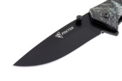 Klasycznie składany nóż z ostrzem w całości gładkim pokrytym czarną powloką galwaniczną.
