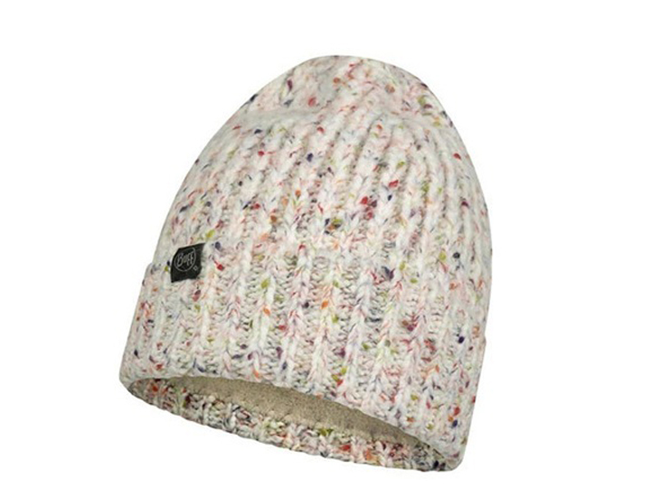 Czapka zimowa BUFF® Knitted & Fleece hat kim white.Ciepła zimowa czapka z domieszką wełny, wiskozy i wełny alpaki.