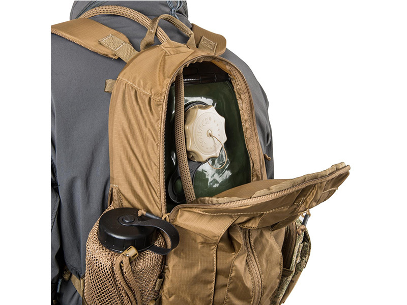 Boczne panele plecaka są wyposażone w dwie płaskie kieszenie z zamkami, skrywające dodatkowe siatkowe uchwyty na butelki i stabilizowane bocznymi taśmami kompresyjnymi. Dodatkowo, plecak jest wyposażony w dwa rzędy wąskich taśm MOLLE Lite na bokach. Pozwalają na przymocowanie dodatkowych kieszeni, jednocześnie ograniczając wagę.