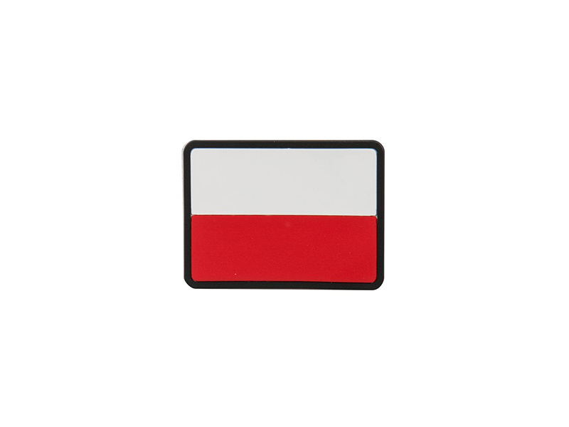 Polska flaga w formie patcha z PVC do noszenia na identyfikacyjnych panelach velcro na odzieży, torbach i plecakach.